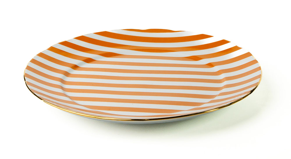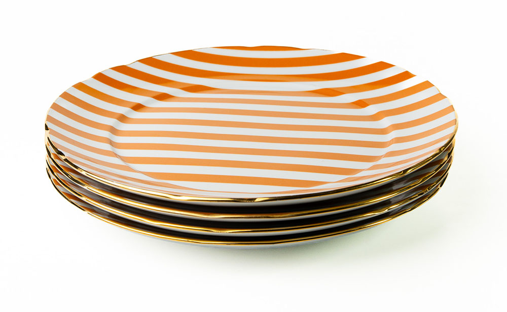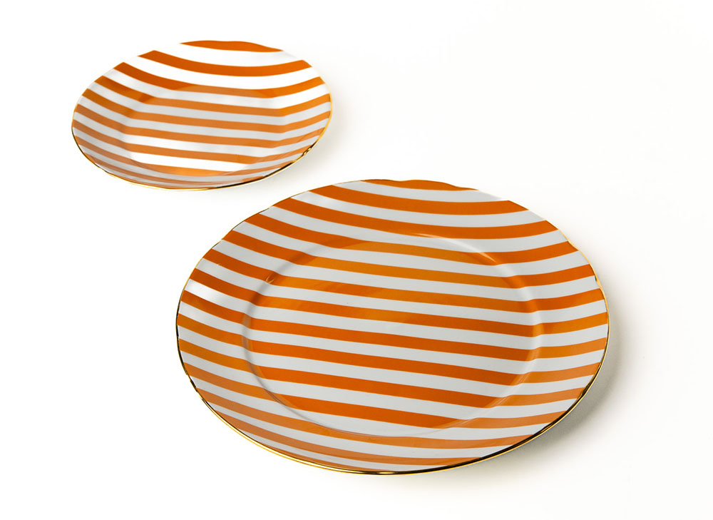 Kit Prato de Sobremesa Coleção “Listras Laranja”