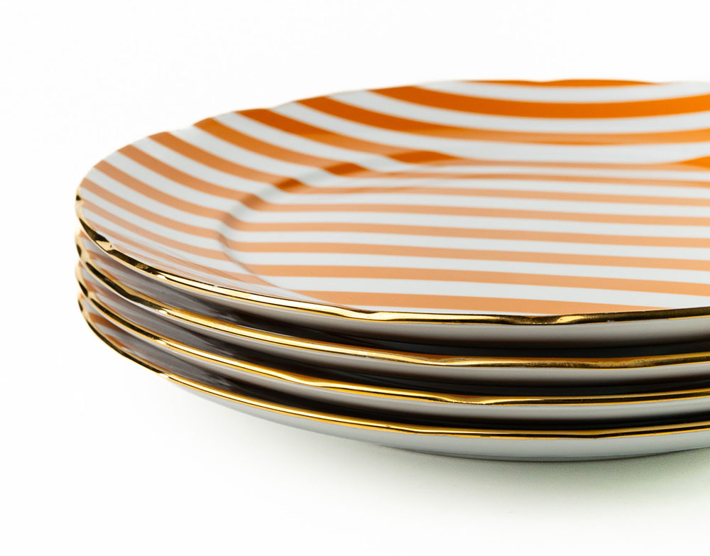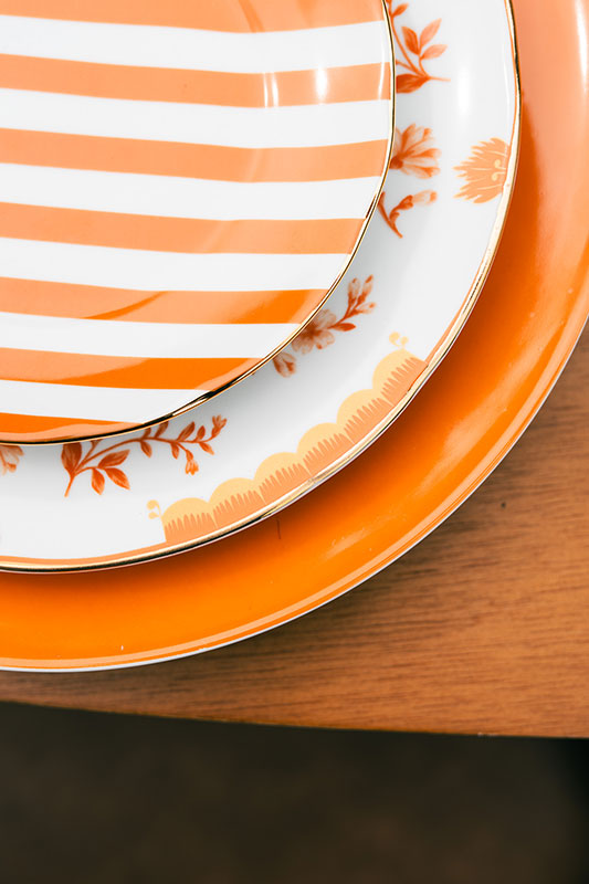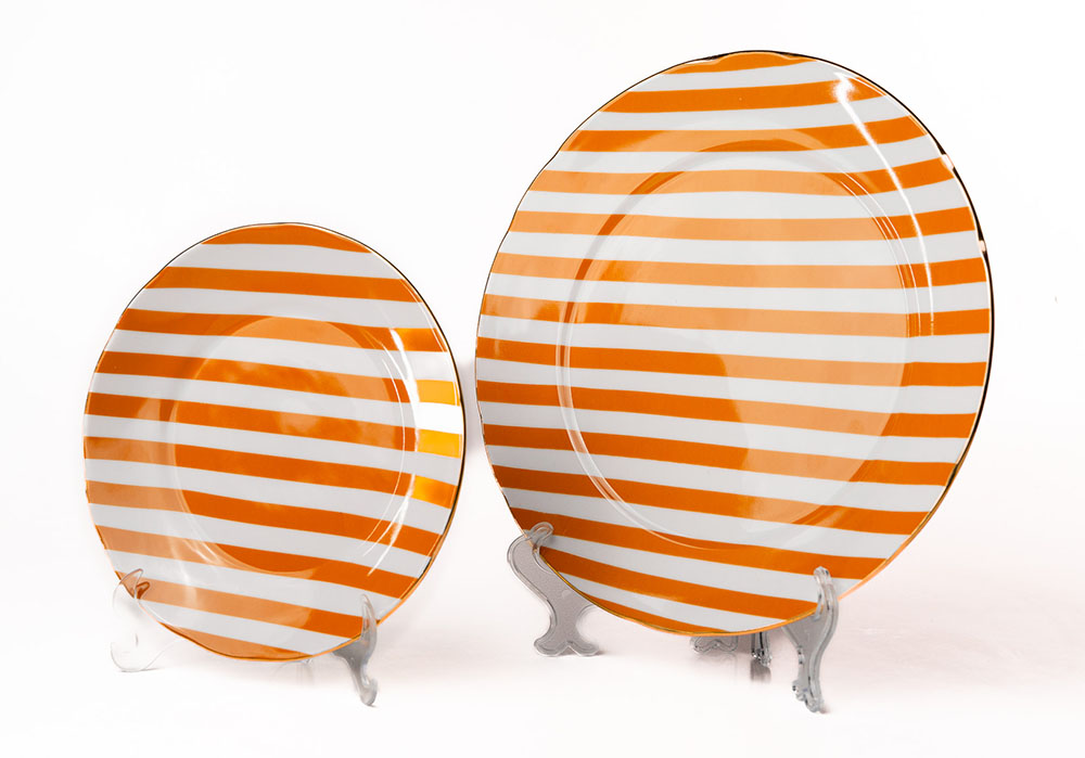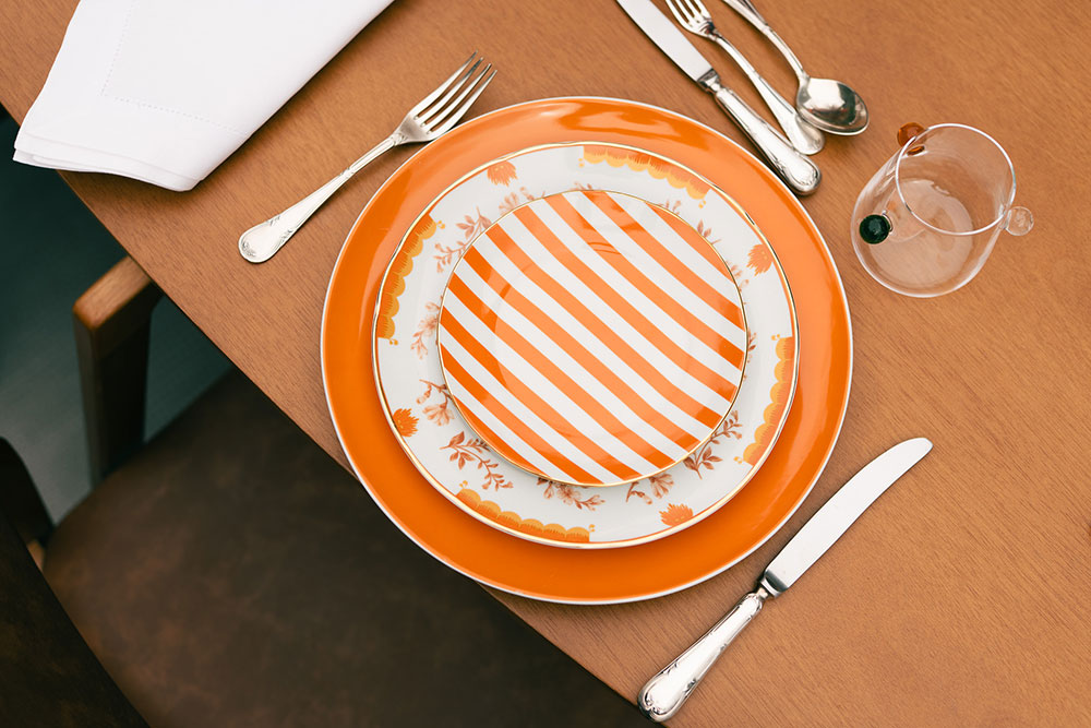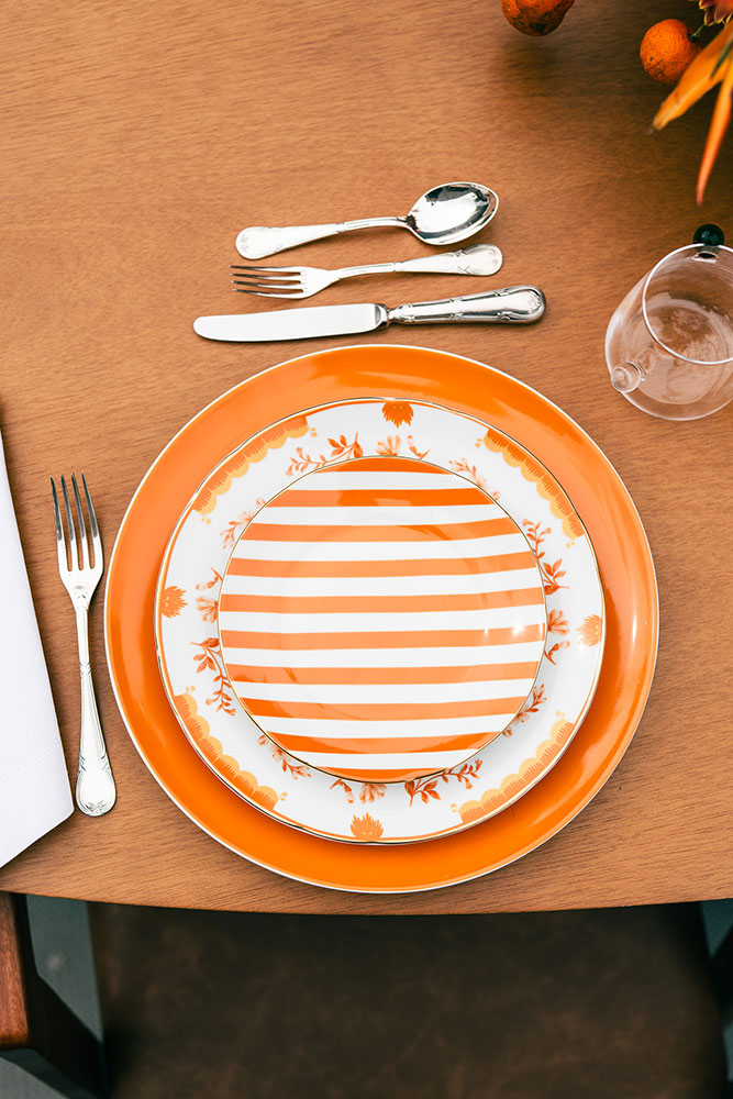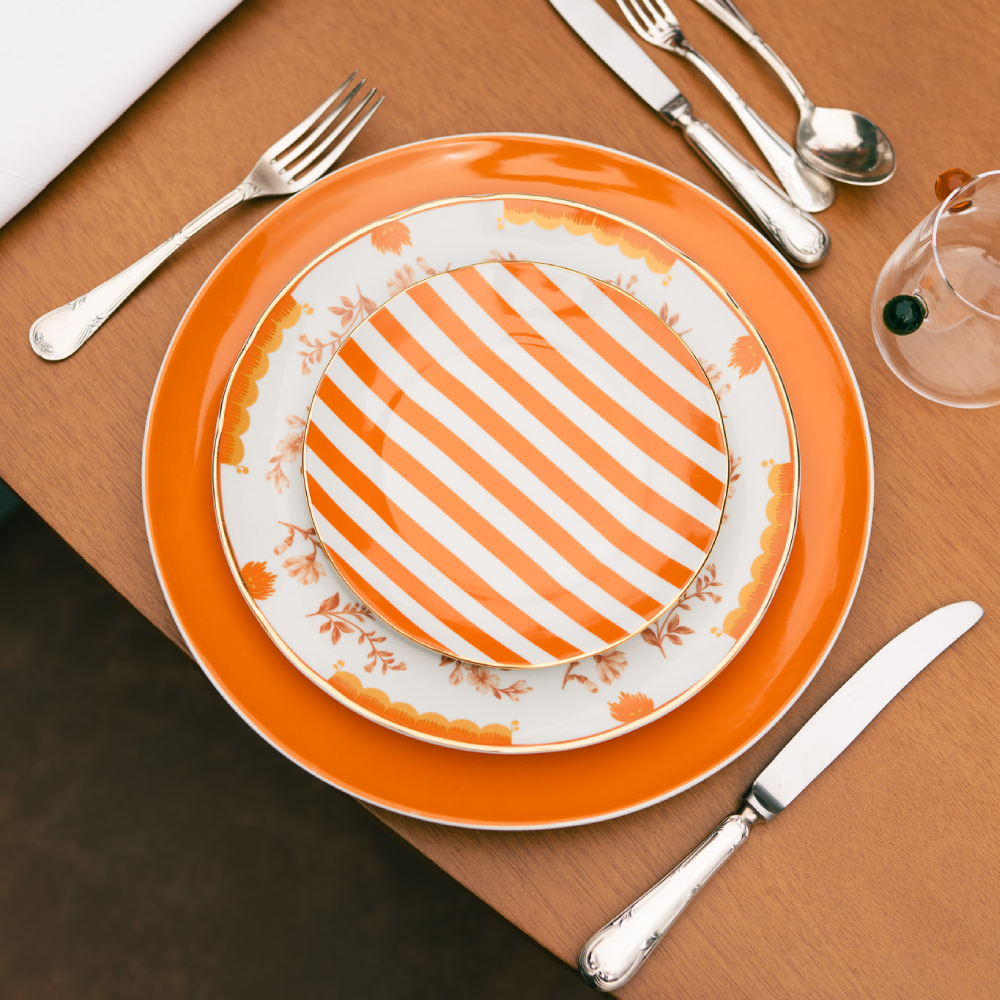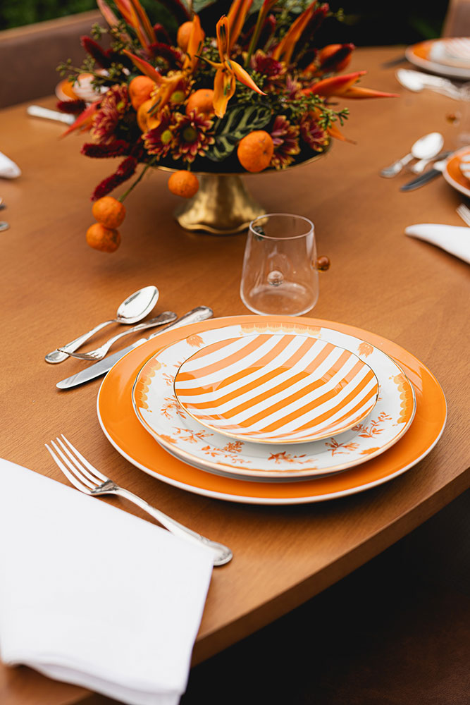 A Coleção Listras Laranja é marcada pela força e alegria da cor cítrica mais vibrante da natureza. O laranja, combinado ao branco, cria uma composição moderna, leve e sofisticada, perfeita para quem deseja uma mesa posta cheia de personalidade.