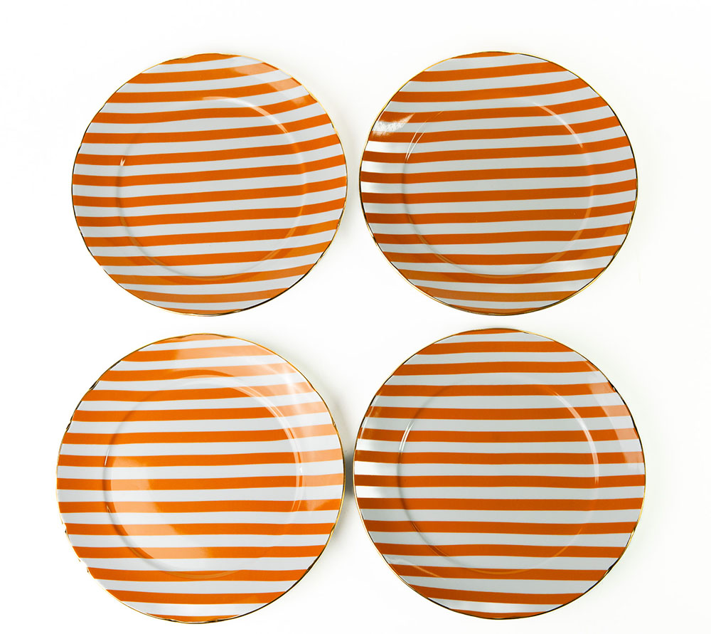 Kit Prato De Sobremesa Coleção Listras Laranja 6 Peças