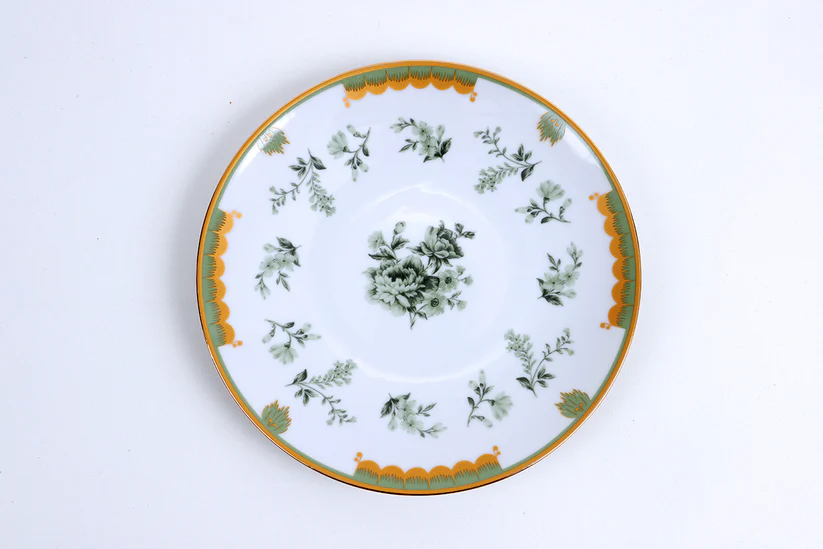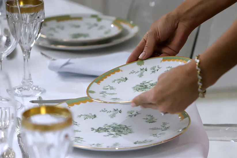São peças em fina porcelana, com estampas exclusivas e acabamento em ouro 18k, proporciona um toque muito especial à mesa e um clima de elegância ao ambiente.