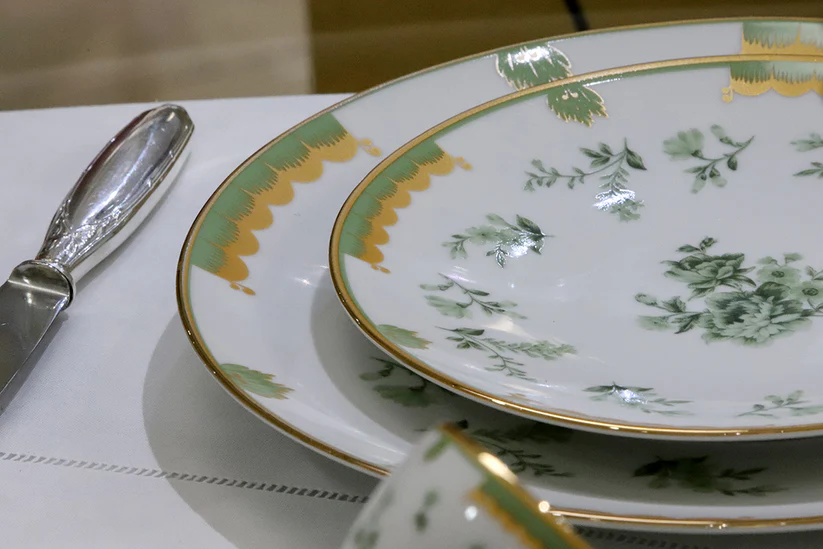 São peças em fina porcelana, com estampas exclusivas e acabamento em ouro 18k, proporciona um toque muito especial à mesa e um clima de elegância ao ambiente.