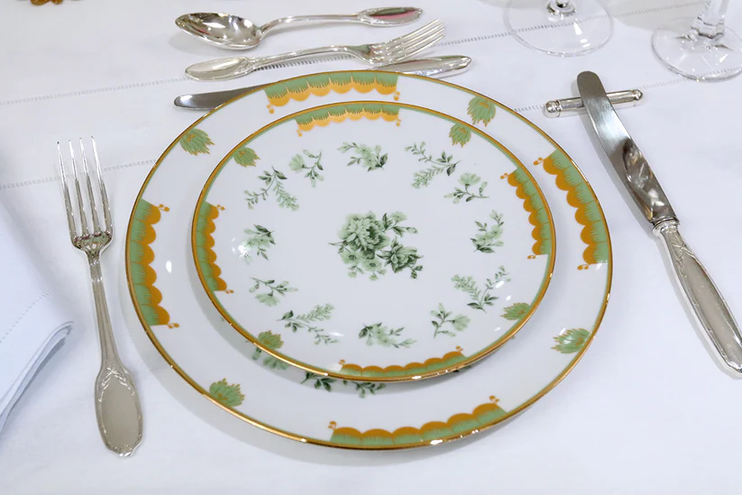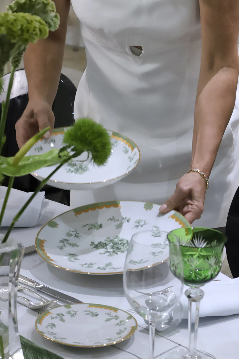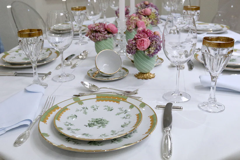 São peças em fina porcelana, com estampas exclusivas e acabamento em ouro 18k, proporciona um toque muito especial à mesa e um clima de elegância ao ambiente.