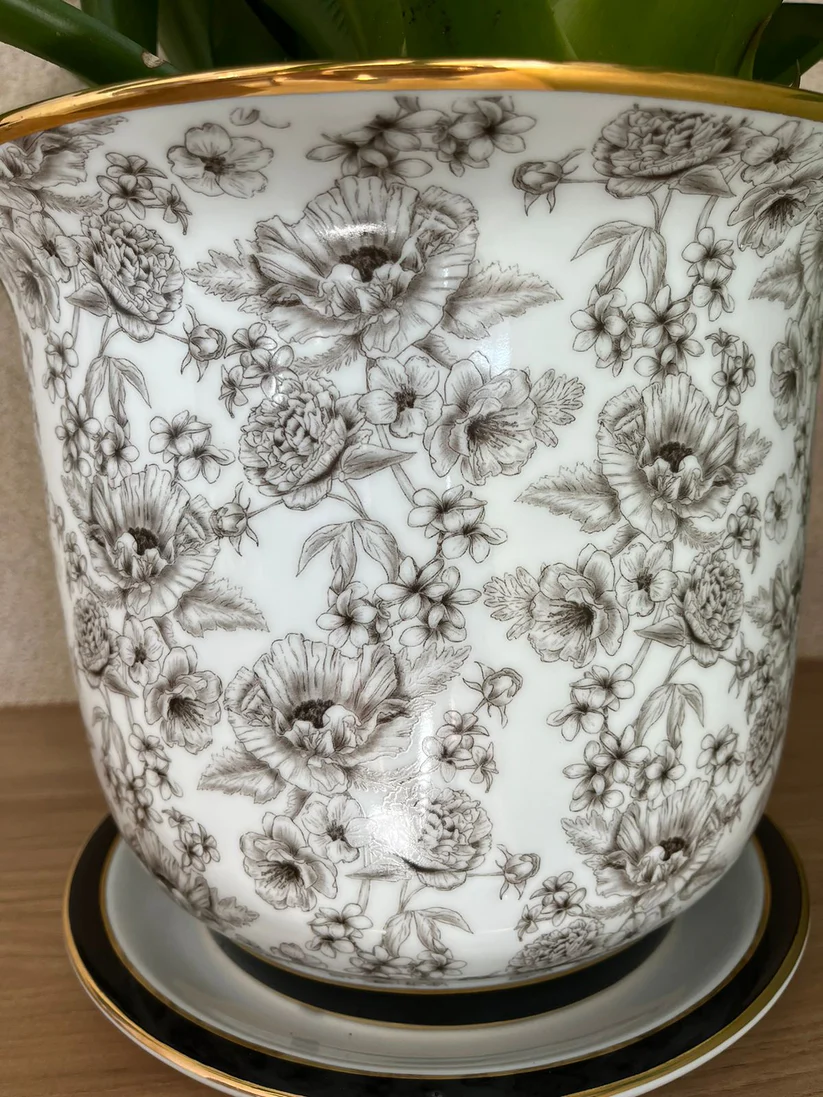 Vaso Cachepot Médio + Prato de base” Coleção Papoula”